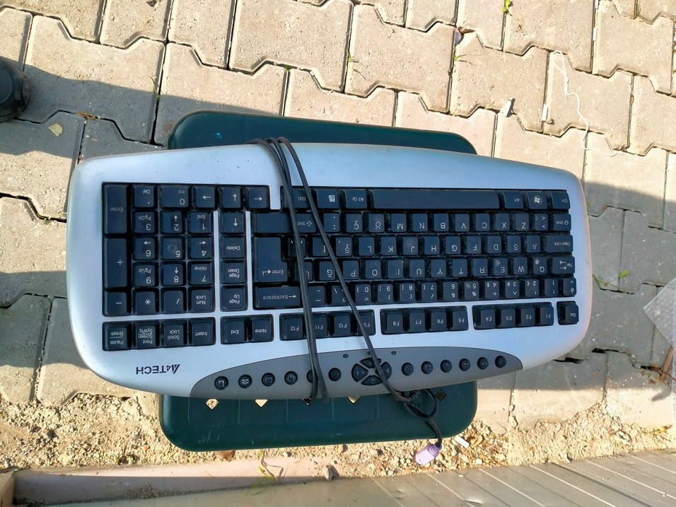 Kablolu, mavi renkte bilgisayar klavyesi. Standart tuş dizilimi ve ek fonksiyon tuşlarına sahiptir.