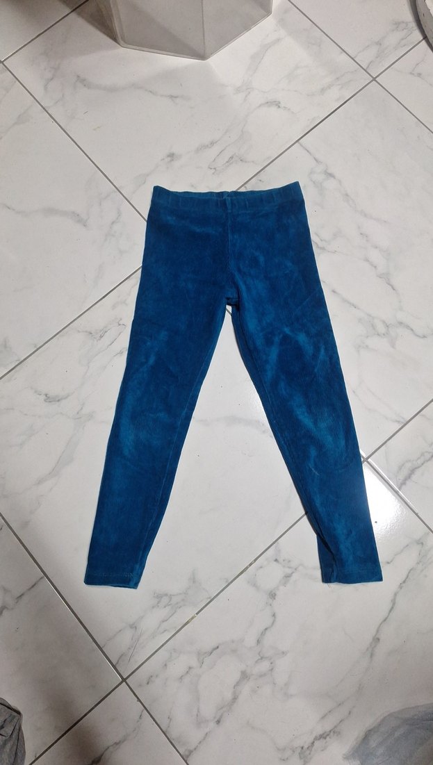 Renkli mavi kadife kumaştan, elastik belli kız taytı, rahat ve şık bir görünüm sunar.