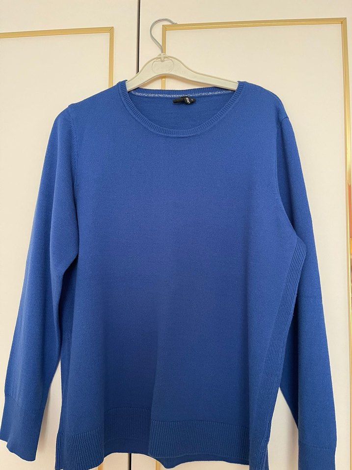 Mavi kadın kazak, bisiklet yaka ve uzun kollu, rahat kesimlidir. Yumuşak ve sıcak kumaştan üretilmiş, parlak ve desensizdir, günlük kullanıma uygundur. ✨