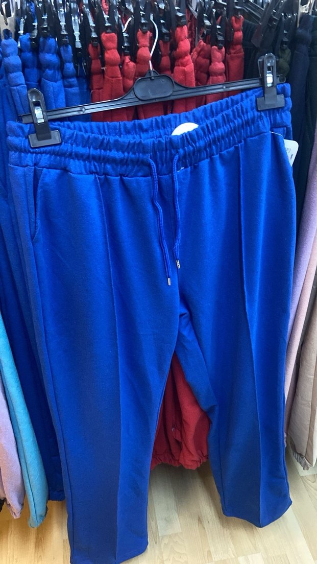 Mavi renkte, bol kesim ve pileli detaylara sahip kadın eşofman altı, elastik bel bandıyla spor ve günlük kullanıma uygundur. ♀️ Bedenleri mevcuttur