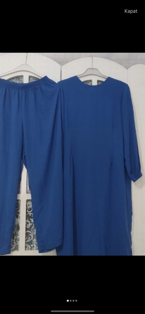 Koyu mavi renkte, bol kesim ve uzun boyda kadın tunik. Kısa kollu, yuvarlak yaka ve ipeksi dokuda, günlük kullanıma uygun sade ve şık tasarım.