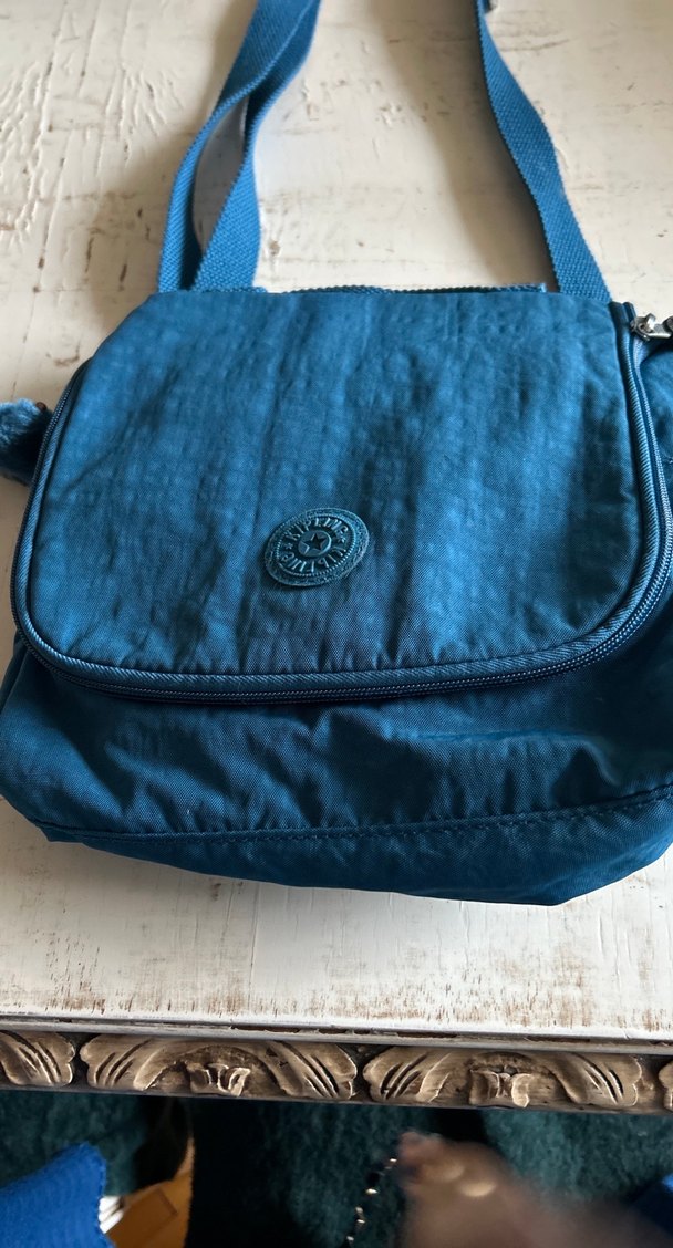 Mavi parlak sentetik kumaştan yapılmış, fermuarlı kadın çapraz çanta. Minimalist ve bohem tarzıyla günlük kullanım için uygundur.