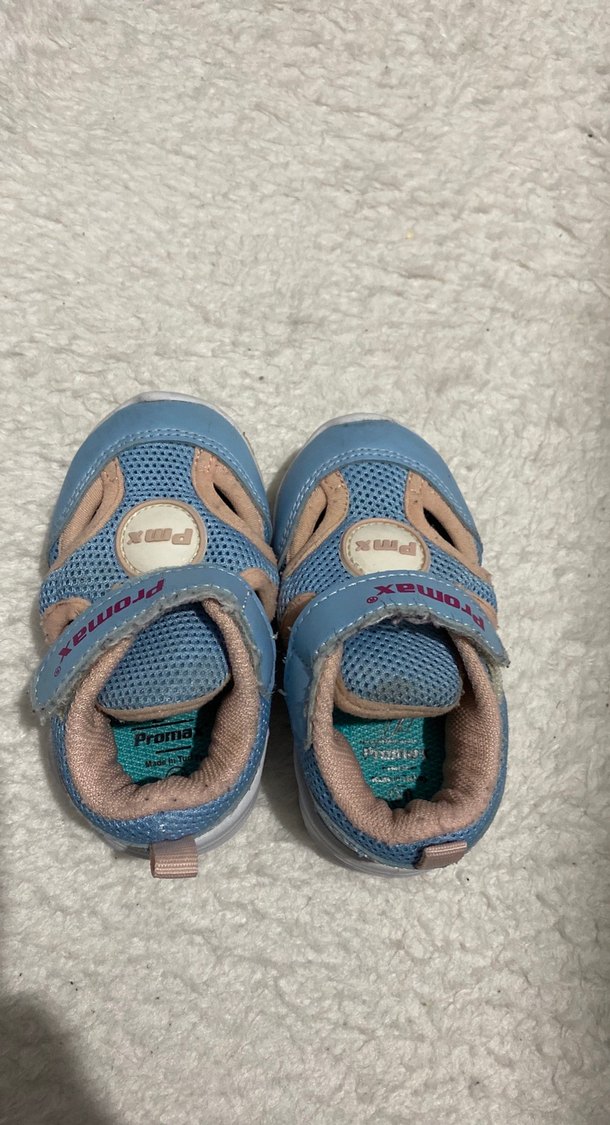 Dayanıklı kauçuk malzemeden yapılmış, baskılı detaylı ve cırt cırtlı kapamalı pastel mavi kız çocuk spor ayakkabısı.