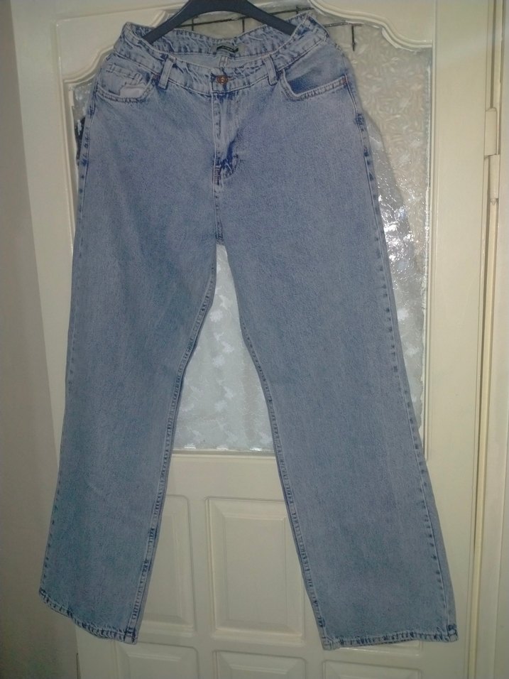 mavi renkte, bol kesim ve midi boyda kadın denim jean. Kemerli bel detayıyla günlük rahat sokak stili için uygundur.