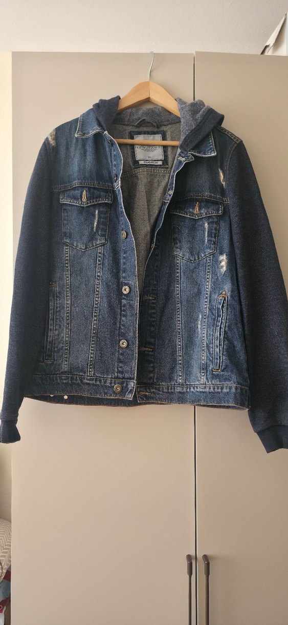 Düğmeli, uzun kollu, yakalı mavi denim ceket, rahat kesimiyle günlük sokak stiline uygundur. L ve XL bedene uygun, az kullanıldı defosu yok. İki koltuk arası en 54 cm Omuzdan boy 63 cm Şapkası çıkarılmıyor, sıcak tutuyor. Kumaşı %55 pamuk %45 polyester