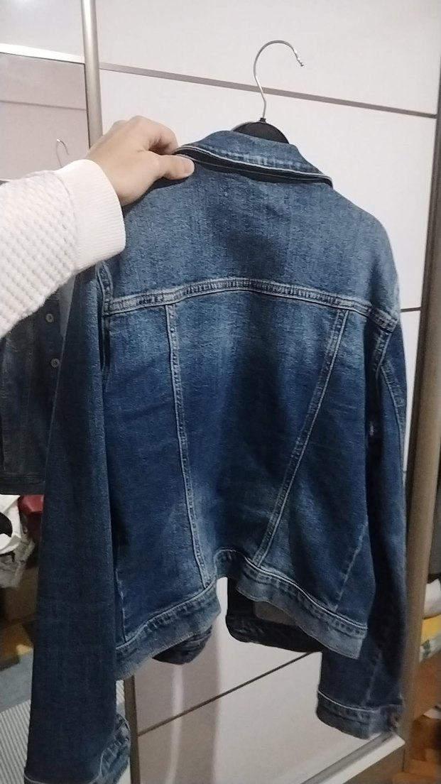 Mavi denim kumaştan yapılmış, düğmeli ve fit kesime sahip kadın ceket. Uzun kollu, normal boyda ve desen içermeyen günlük kullanıma uygun sokak stili ceket.