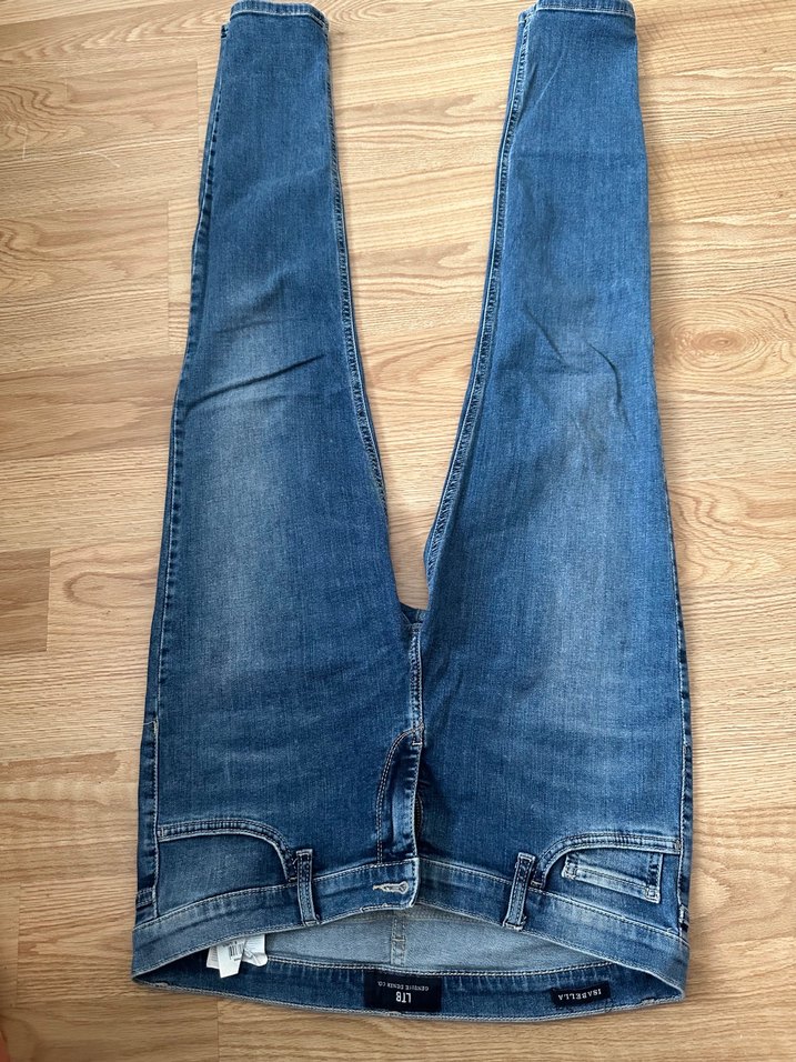 Mavi renkli, normal kesim ve midi boy kadın kot pantolon. Parlak detaylı ve tokalı, gündelik kullanıma uygun rahat bir model.