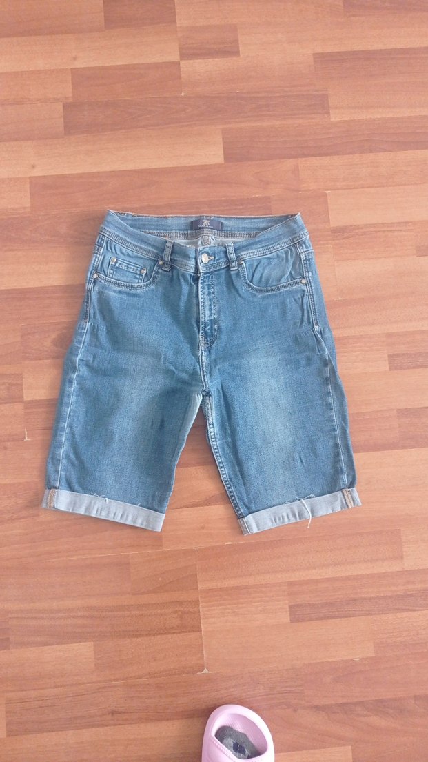 mavi renkte, kısa mini boy ve bol kesim kadın denim şort. Desensiz, günlük kullanıma uygun, rahat ve şık bir sokak stili sunar.