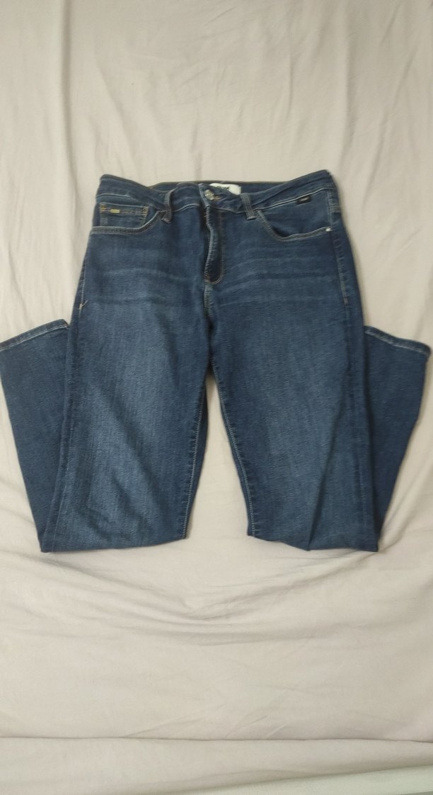 Mavi renkli kadın kot pantolon, normal boy ve regular fit kesime sahip. Sade desensiz tasarımı ve tokalı detayıyla günlük kullanıma uygun rahat bir modeldir. Çok az kullanıldı,çok iyi durumda