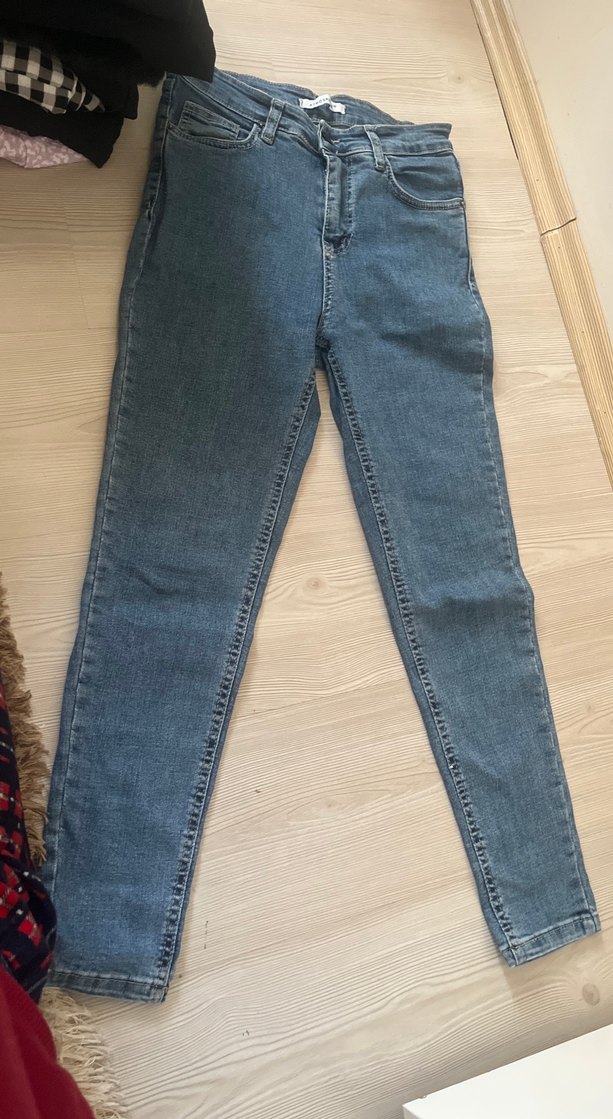 Mavi renkte, normal boyda ve regular fit kesime sahip kadın denim pantolon. Tokalı detayıyla günlük rahat kullanım için uygundur.