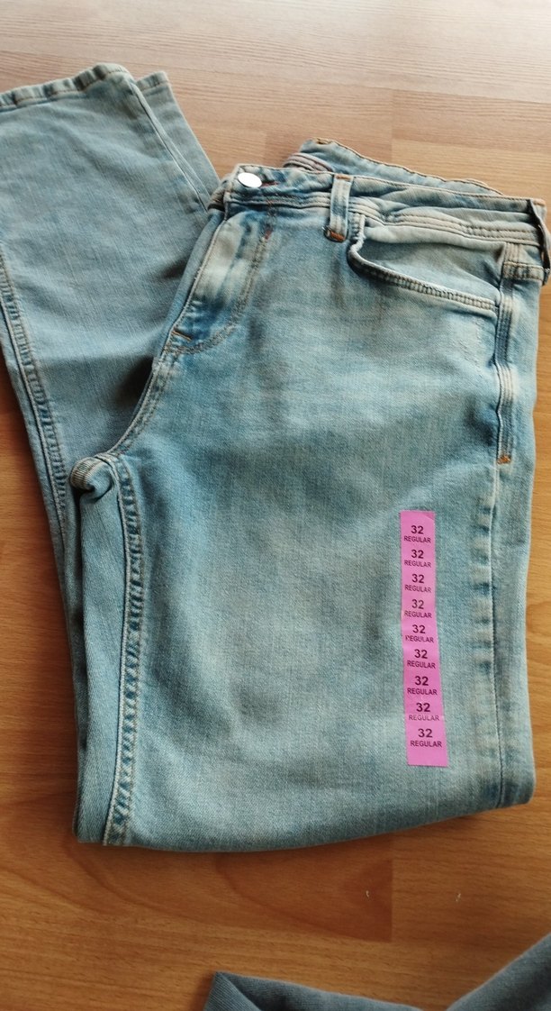 Mavi renkte, normal boy ve regular fit kadın denim pantolon. Tokalı ve hafif desenli, günlük rahat kullanıma uygun.