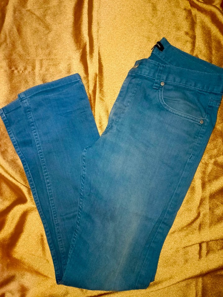 Mavi renkli, regular fit kesim ve midi boyda, parlak görünümlü kadın denim pantolon. Günlük kullanım için rahat ve şık bir seçim.