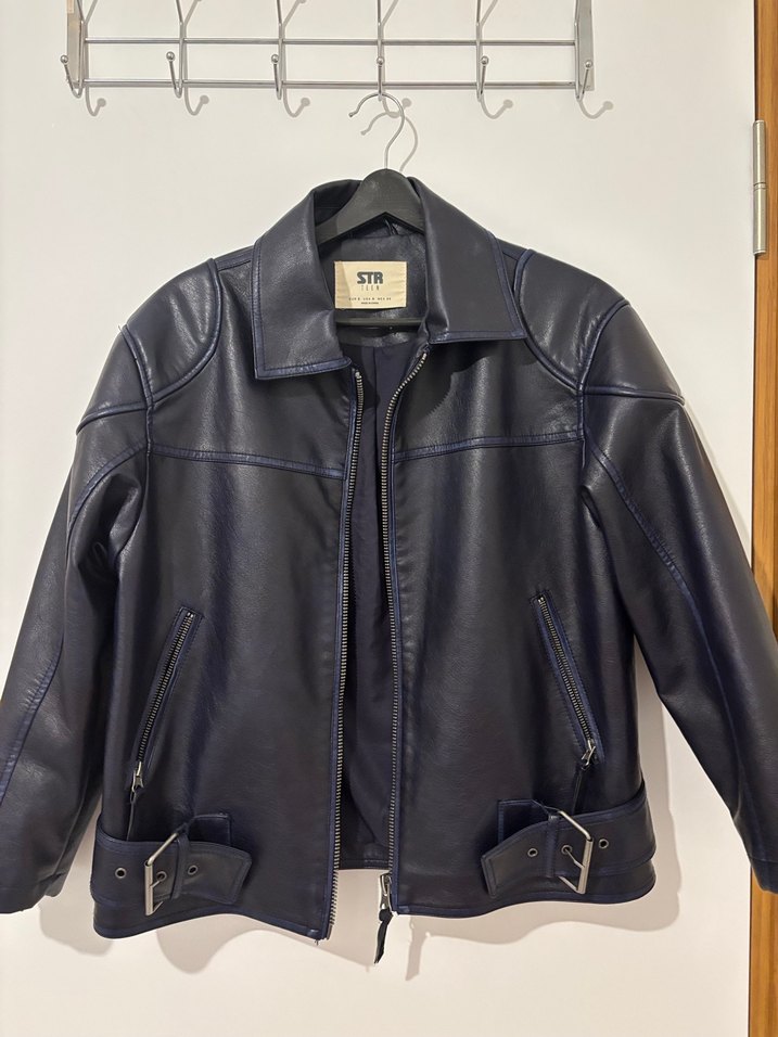 Mavi Kadın Deri Biker Ceket Stradivarius