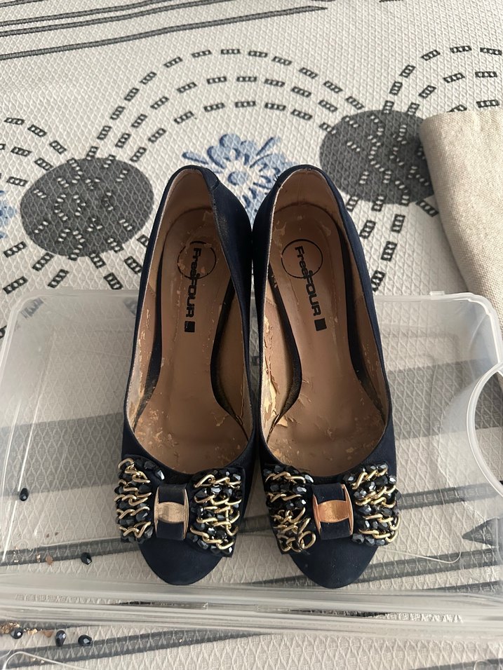 Mavi renkte, yılan desenli ve tokalı detaylı dolgu topuklu kadın babetleri. Kauçuk malzemeden üretilmiş, günlük kullanıma uygun şık ve rahat tasarım.