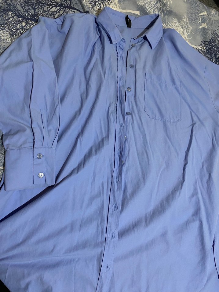 , düğmeli, uzun kollu, yakalı, normal boy, bol kesim kadın gömlek. DeFacto markası xxl mavi kadın gömlek Göğüs 62 cm Boy:84 Aynısının pembesi de var