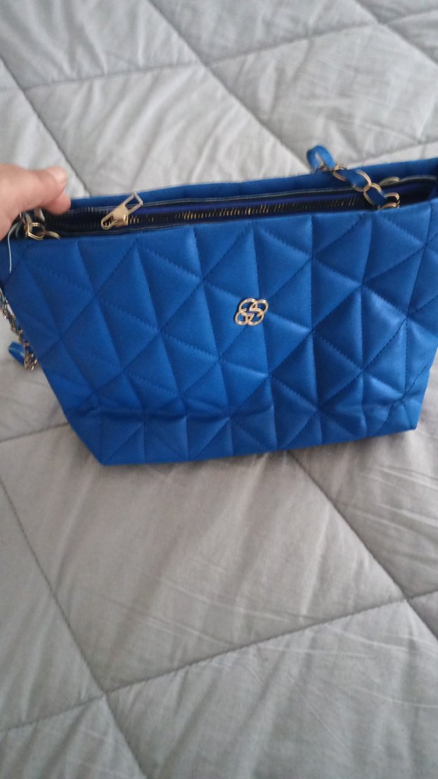 Mavi renkli, fermuarlı kapamalı, deri kumaştan kadın çantası. Günlük kullanım ve minimalist, çağdaş tarz için uygundur. slsaplarini çıkartıp el cantasi olarakta kullanabilirsiniz