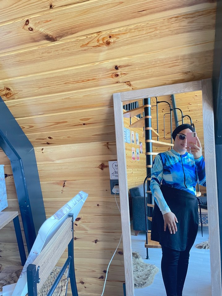 Mavi renkli, normal boy midi uzunluğunda kadın denim takımı. Balıkçı yaka, uzun kollu, tie-dye desenli ve transparan detaylara sahip. Street style için uygun.