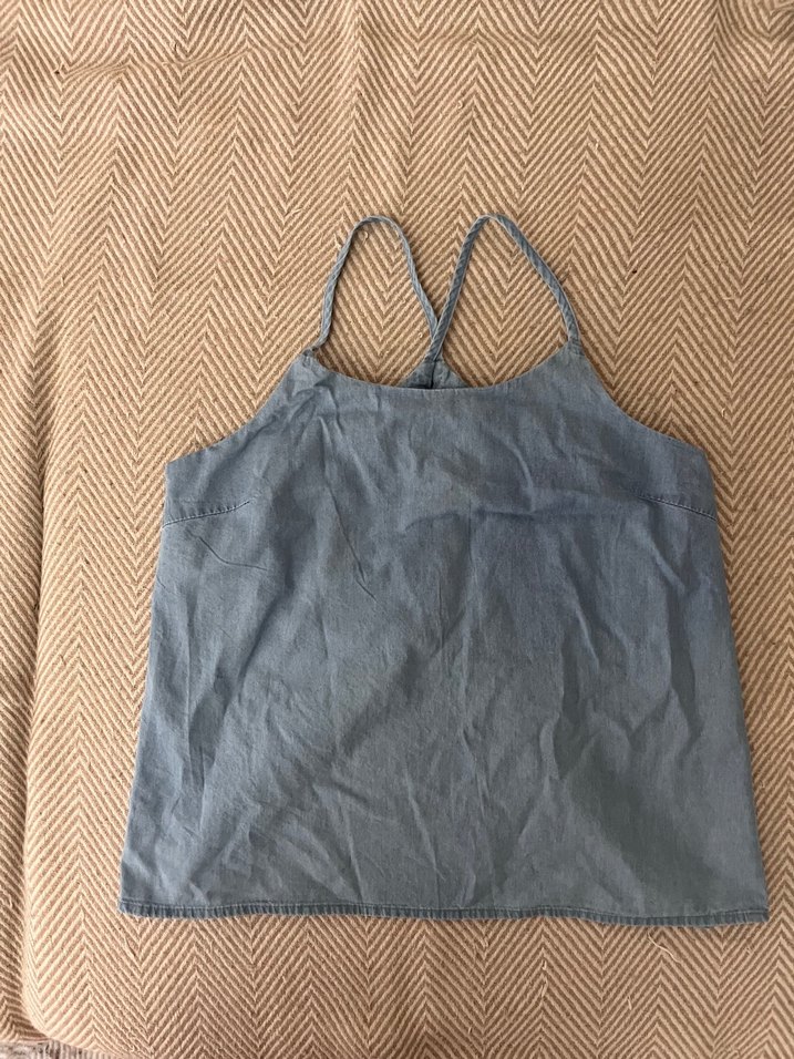 Kadınlar için ince askılı, mavi renkte ve düz desenli rahat . Yumuşak kumaştan üretilmiştir.