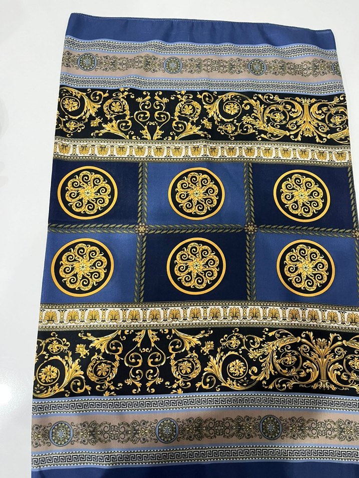 Kadınlar için mavi ve altın renklerde, ipek görünümlü, drapeli bohem ve retro tarzda şal.
