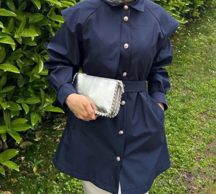 Mavi Kadın Kemerli Midi Trençkot
