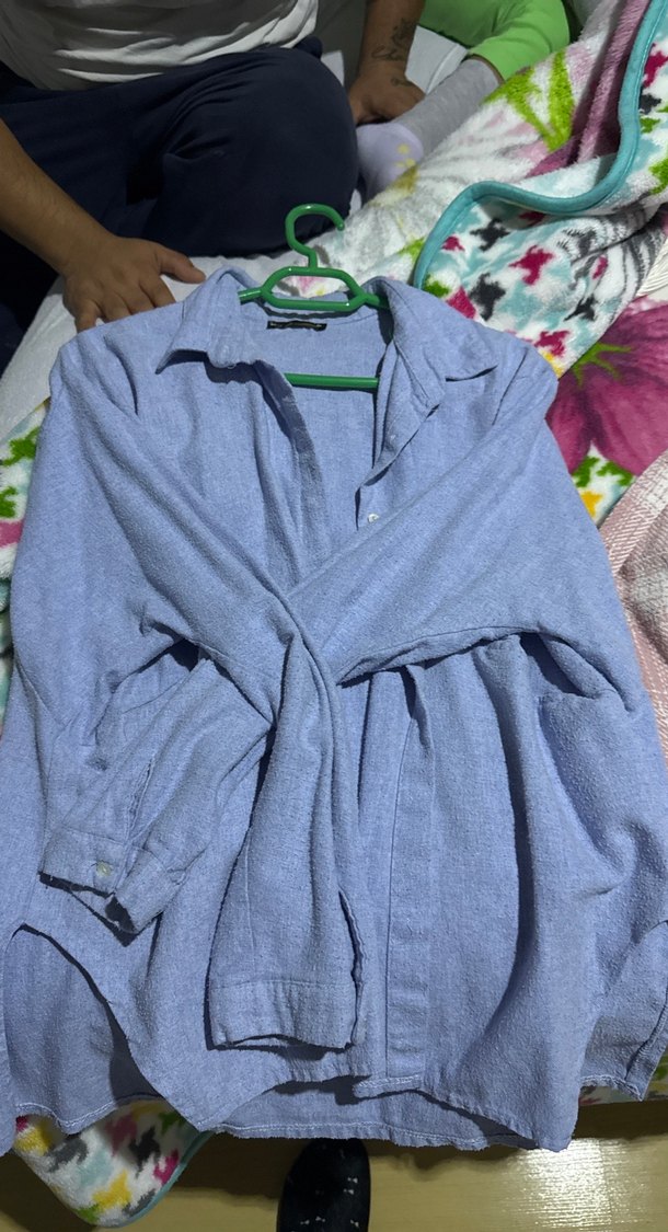 Nefes alabilen keten kumaştan, bol kesim mavi kadın gömlek. Uzun kollu, yakalı ve düğmeli, sade tasarımıyla günlük rahat kullanıma uygun.