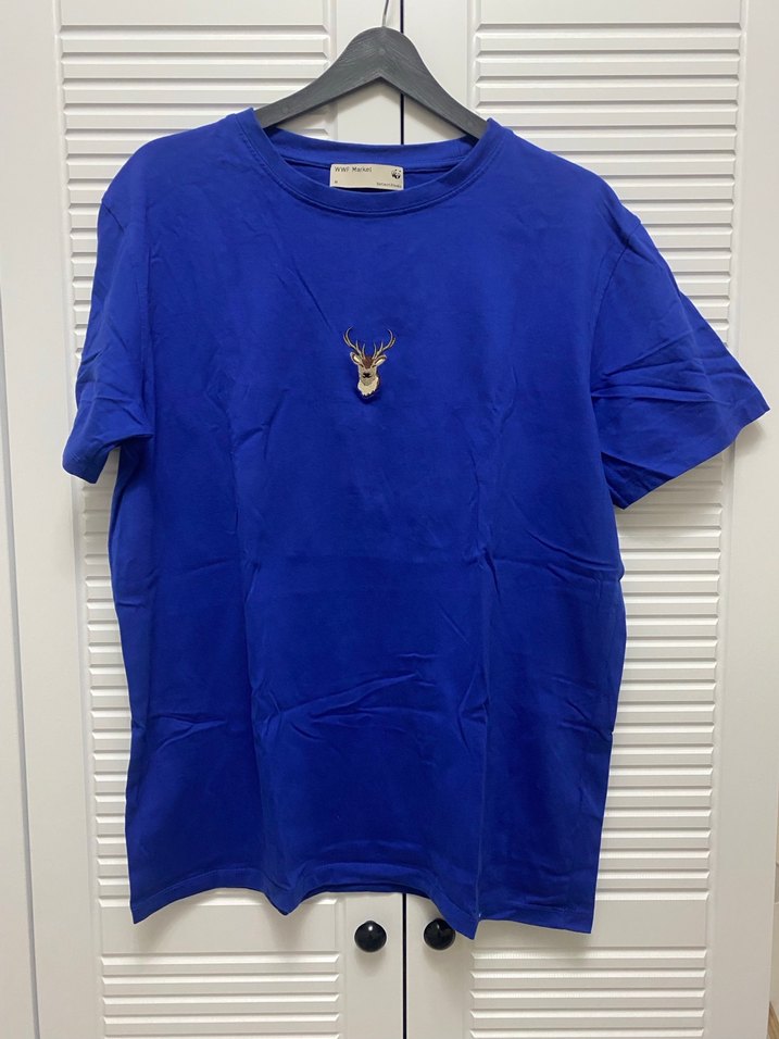 Mavi renkte, süet kumaştan, kısa kollu ve yuvarlak yakalı kadın tişörtü. Baskılı deseni ve rahat kesimiyle günlük şıklık sunar.