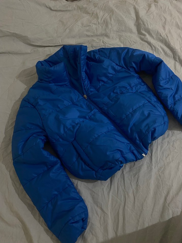 Mavi renkte, fermuarlı, uzun kollu ve yüksek yakalı kadın kışlık mont. Sıcak tutan yumuşak kumaştan, günlük kullanıma uygun rahat tasarım. ❄️