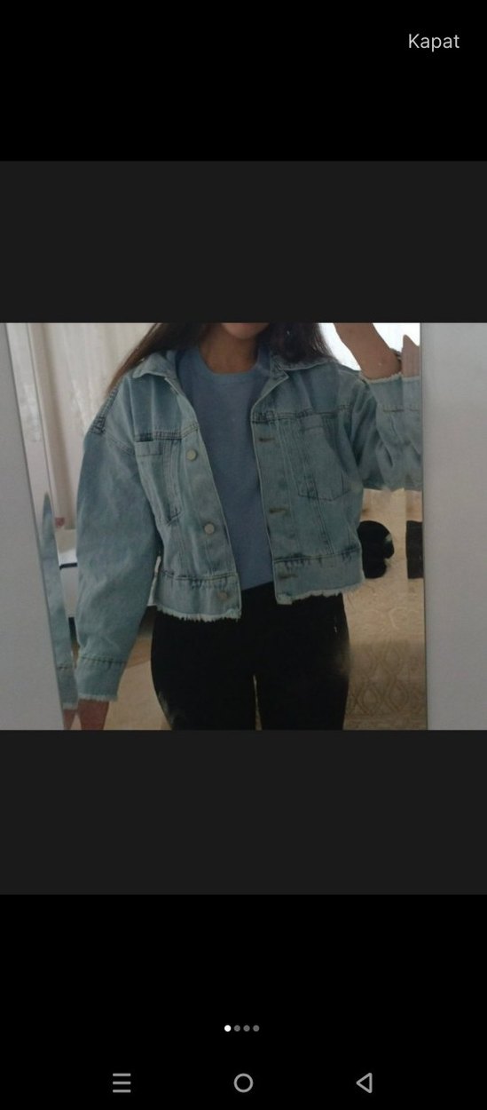 Kadın Eskitme detaylı denim ceket. Normal boyda, yuvarlak yakalı ve günlük sokak stili için uygun.