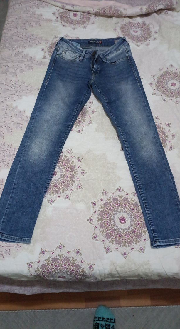 Kadınlar için gri-mavi tonlarda, tokalı ve normal kesim denim pantolon, rahat günlük sokak stili için uygun.