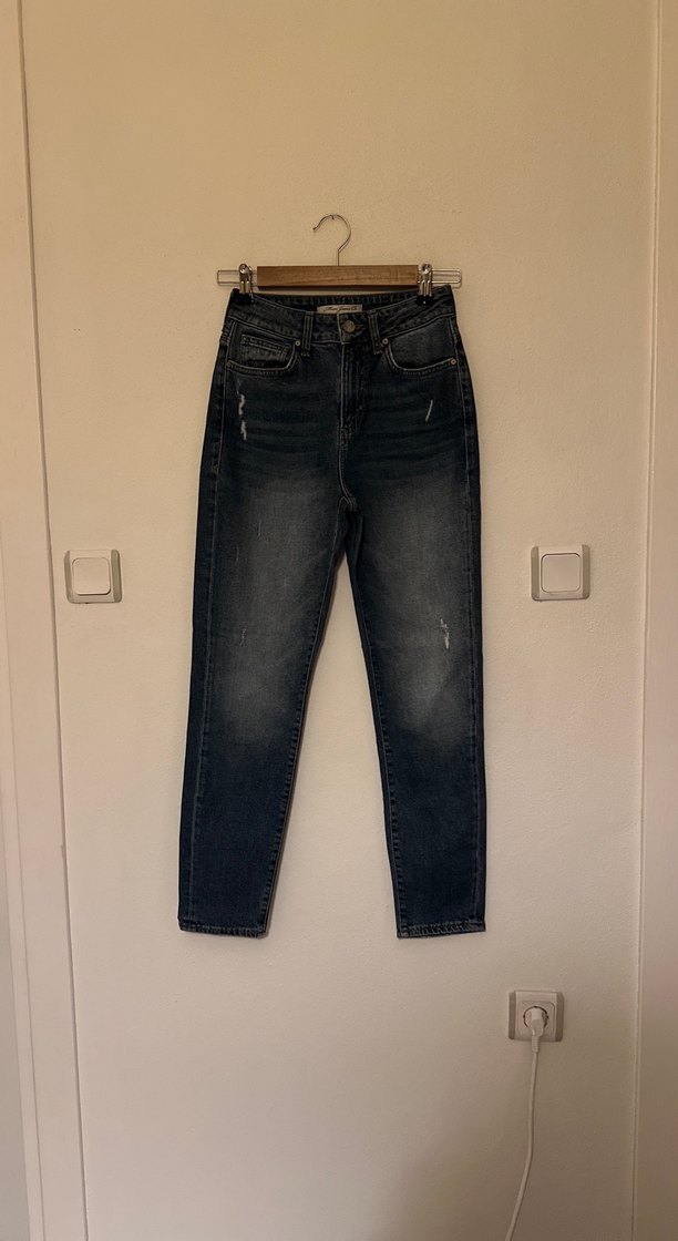 Koyu mavi renkte, normal kesim ve midi boyda kot pantolon. Bel kısmında tokalı detay bulunur, günlük kullanıma uygundur. Boyu 95 cm’dir. %98 pamuk %2 elastan karışımlı kumaşa sahiptir. Orta yüksek bellidir. Vücudu çok güzel sarar.