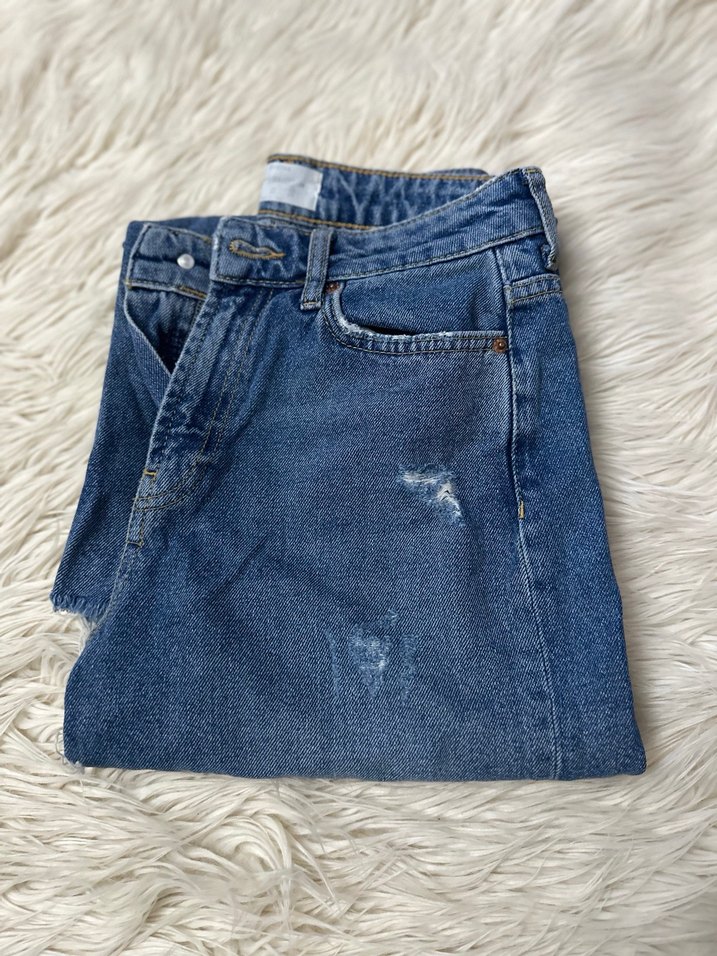 Mavi kot kumaştan, rahat kesime sahip kadın pantolon. Hafif yıpranmış detaylar ve iç kısmında konforlu kürk detayı bulunur. Günlük kullanım için uygundur.