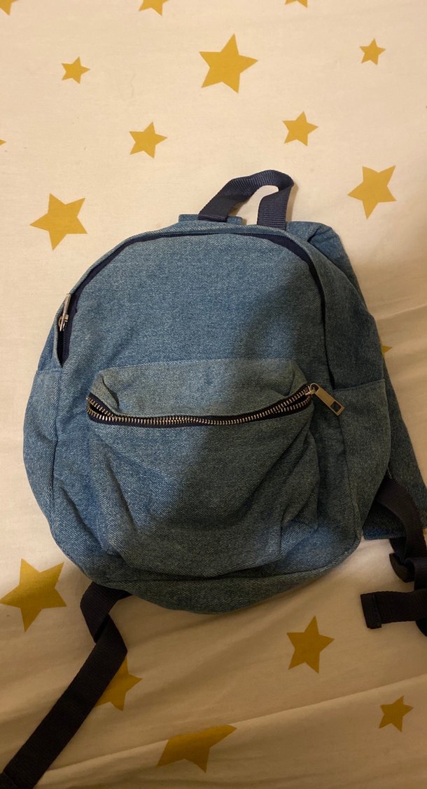 Mavi kot kumaştan yapılmış, fermuarlı cepleri olan günlük kullanıma uygun kadın sırt çantası. Rahat ve şık bir tasarıma sahiptir.