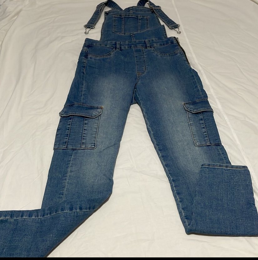 Rengi bi tık daha açık, ince kot kumaş, vücuda oturan kadın tulum. Sayılı giydim. L beden ama M giyene rahat olur.