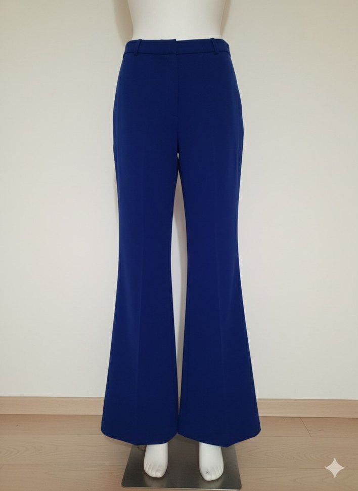 Mavi renkte, normal boy midi kumaş pantolon. Ofis için klasik ve minimalist tarzda, regular fit.