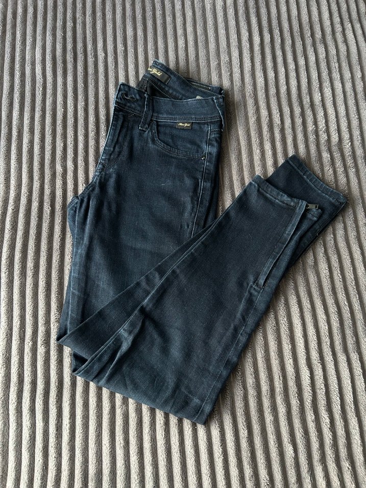 Lacivert renkte, dar kesim, midi boy kot pantolon. Fermuar detayları ve günlük rahat kullanıma uygun.
