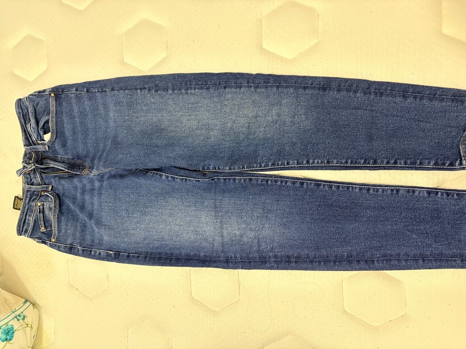 Mavi renkte, parlak görünümlü, normal kesim ve midi boy kot pantolon. Fermuarlı detayıyla sade ve günlük kullanıma uygun.