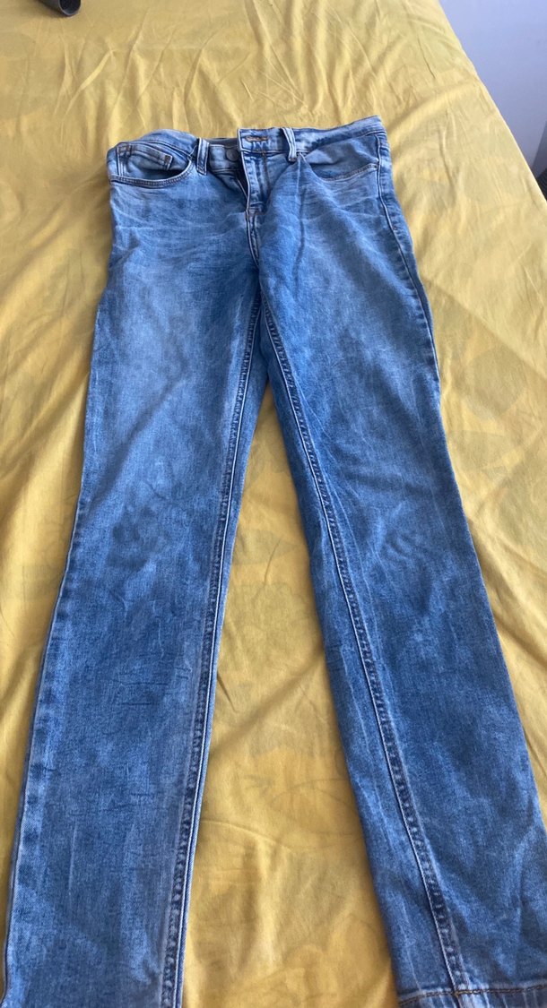 Mavi denim kumaştan, regular fit ve midi boy kadın kot pantolon. Parlak ve desensiz, günlük rahat kullanım için zahmetsiz şıklık sunar.