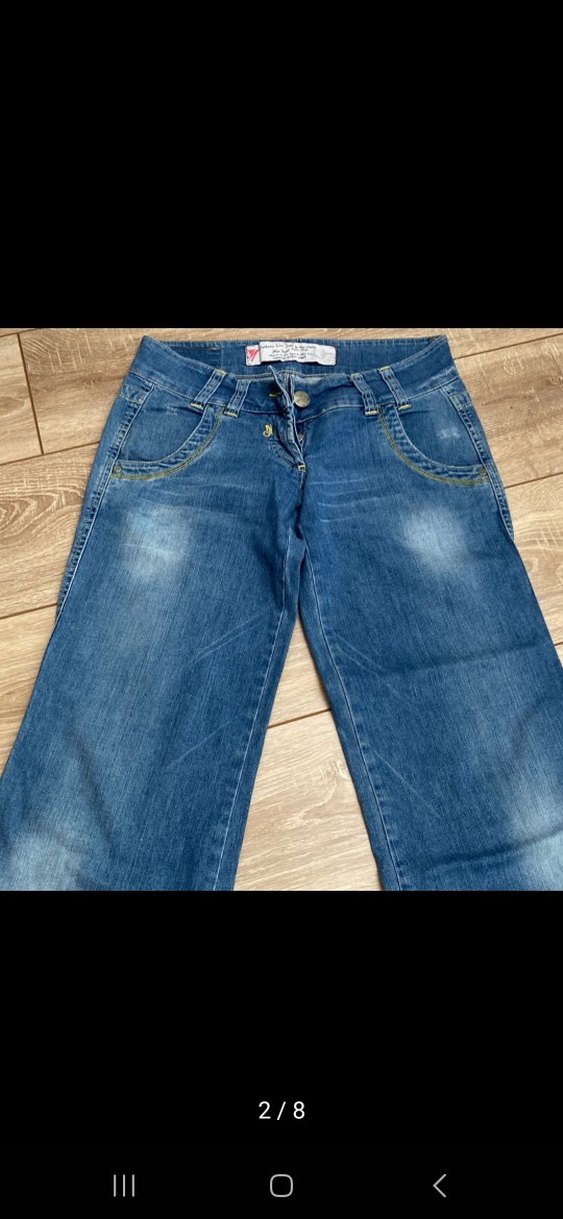 Mavi denim kadın pantolon, normal boy ve regular fit. Yırtmaç detayı ile trend casual stile uygun, parlak kumaş dokusu bulunur.