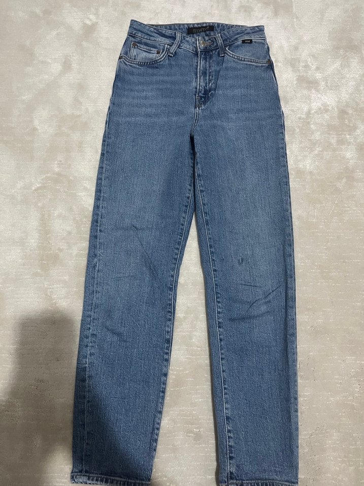 Mavi denim kumaştan, normal boy ve regular fit kesime sahip bu kadın pantolon, gündelik normcore stilinde rahat ve şık bir görünüm sunar. Desensiz ve sade tasarımlıdır. Beden :24/27