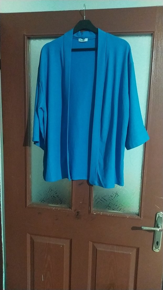Pastel mavi renkte, uzun kollu, midi boy rahat kesim kadın robe. Minimalist ve desensiz tasarımıyla sade bir görünüm sunar. Kimono temiz sağlam az kullanılmış.
