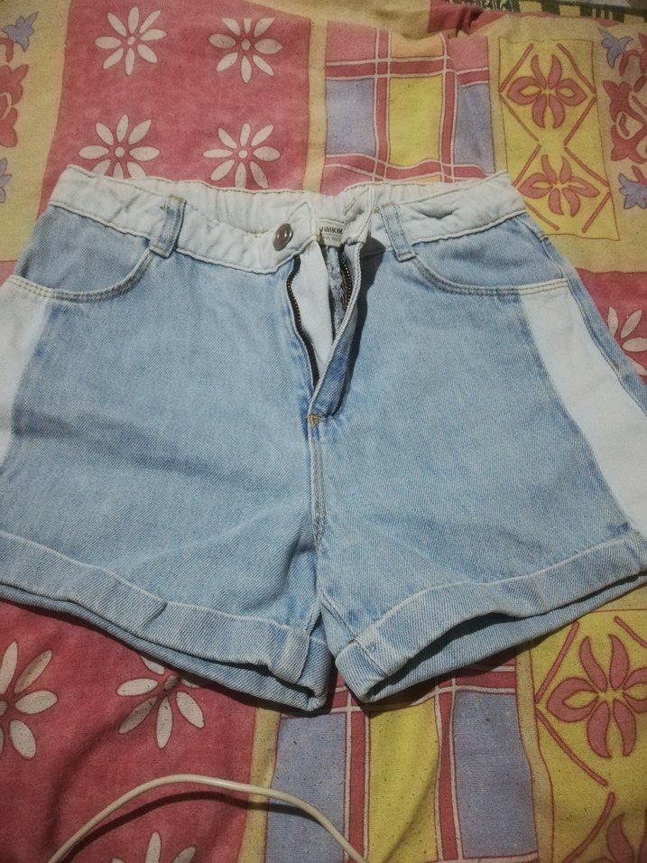 , kısa paçalı, bol kesim kadın denim şort. Pastel mavi tonlarında, bağlama günlük rahat kullanıma uygun.