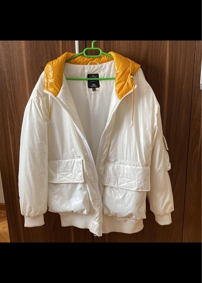 SATILDI. S beden. Mavi marka. Oversize kalıp. Parlak naylonlu kumaştır. Çok sıcak tutuyor. Birkaç kez giyildi, çok iyi durumda.