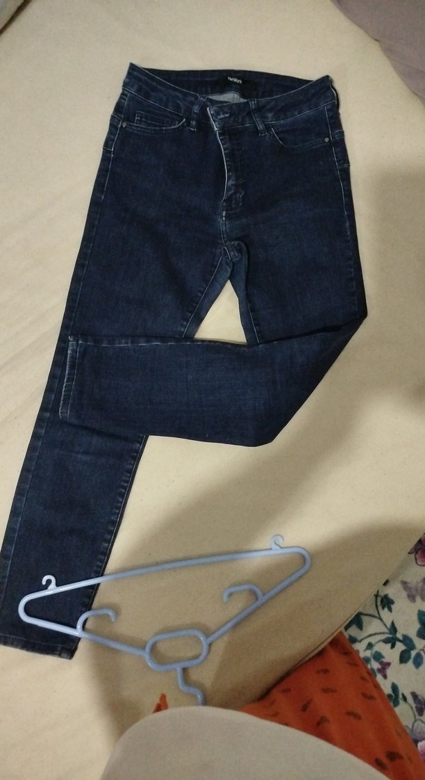 Mavi renkli, normal boyda, slim kesim denim pantolon. Tokalı detaylarıyla günlük kullanıma uygun, sade ve rahat bir model.