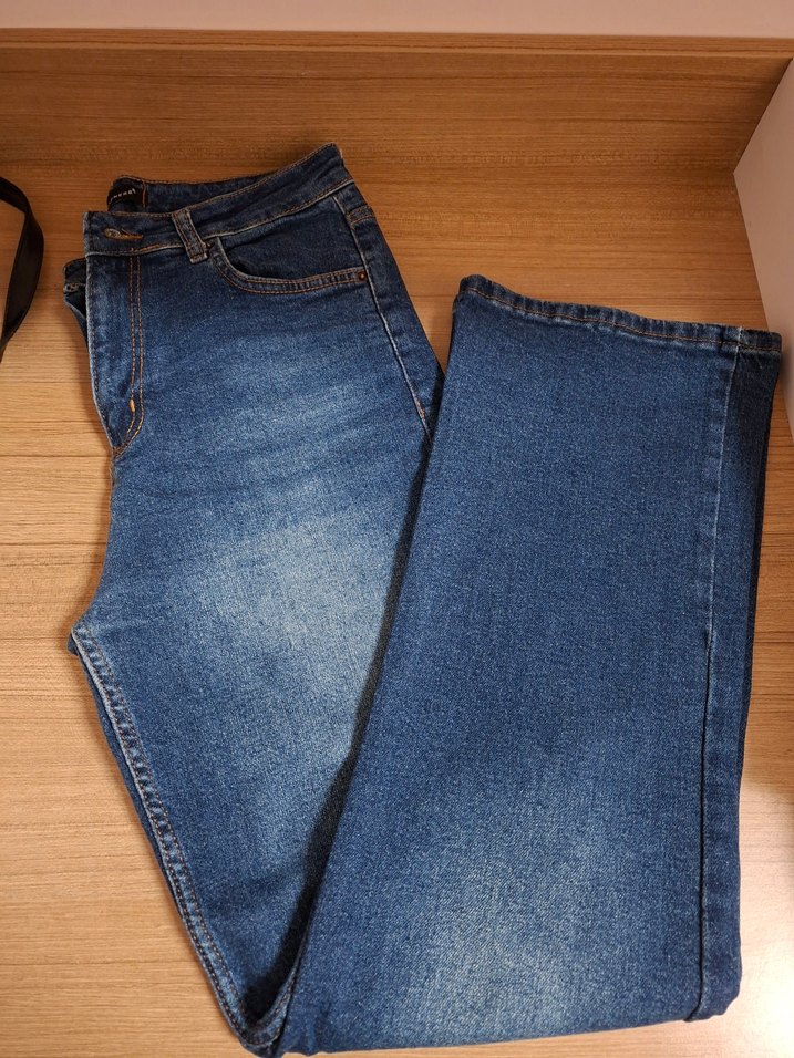 Parlak mavi renkte, normal kesim denim pantolon. Günlük kullanıma uygun, rahat ve şık sokak stili jeans.
