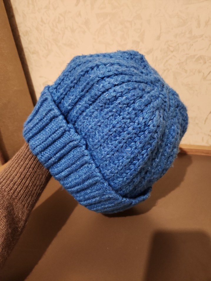 Mavi örgü bere, rahat ve renkli bir tarz sunar, klasik örgü deseniyle soğuk günler için uygundur. koton marka