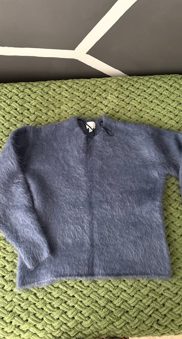 Mavi renkli, örgü kumaştan yapılmış bu kadın kazak yuvarlak yaka ve uzun kolludur. Rahat, bol kesim ve normal boyda, günlük kullanıma uygundur. Sıkıldığım için satıyorum %50 yündür