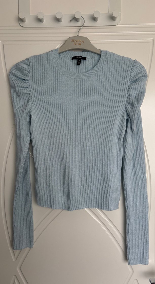 Mavi renkli, uzun kollu ve yuvarlak yakalı kadın örgü kazak. İnce ve vücuda oturan kesimiyle günlük rahat kullanıma uygundur.