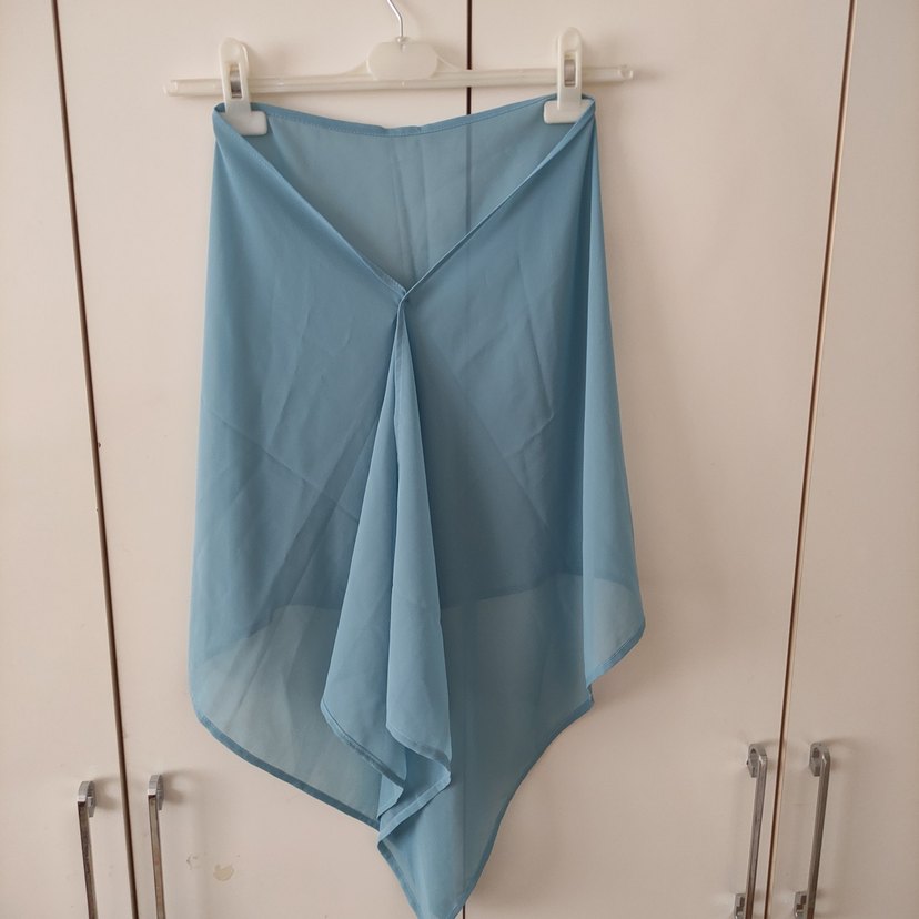 Mavi pastel renk teşifon pareo marka temsili bohem tarzıyla sade ve temel stillere uygundur.