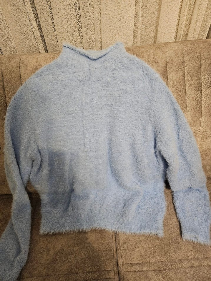 Mavi renkte, yumuşak ve peluş detaylı, uzun kollu ve boğazlı kadın kazak. Rahat kesimi ve normal boyuyla günlük kullanıma uygundur.