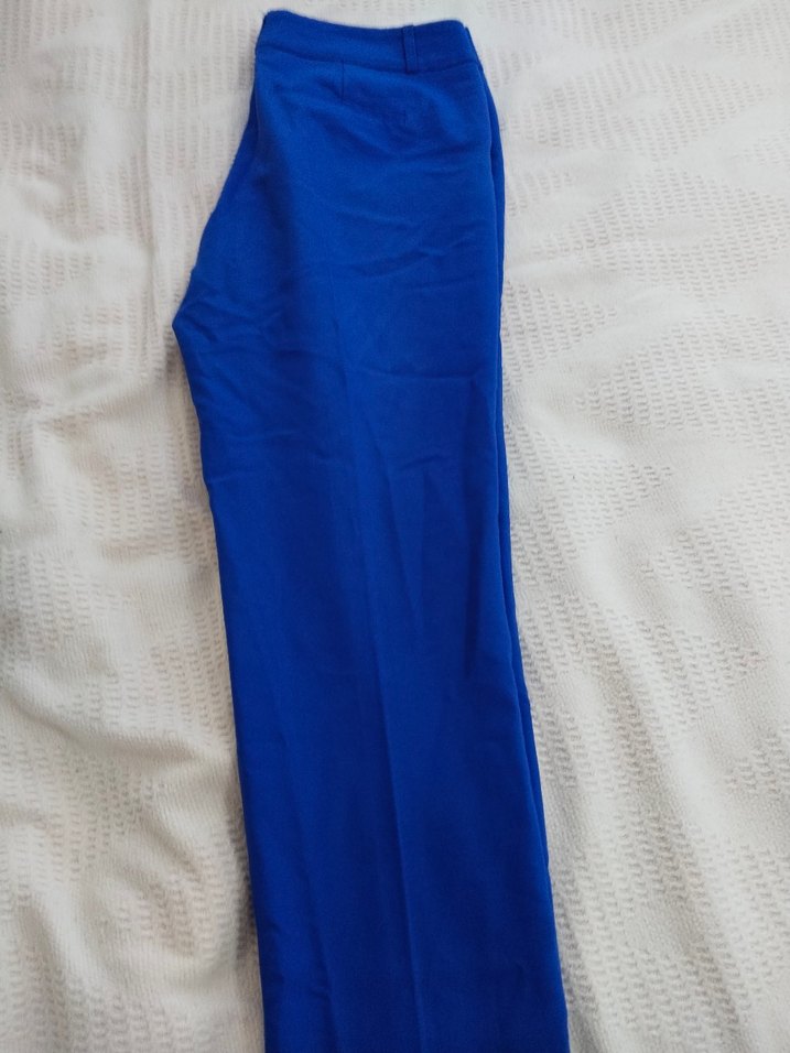 Mavi renkli, normal boy ve regular fit kadın kumaş pantolon. Yumuşak sentetik kumaştan, piliseli detaylı, sokak stili athleisure tasarım. Günlük kullanım için uygun.